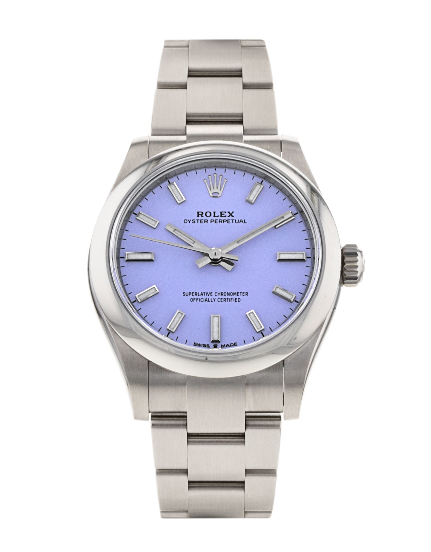Questo Rolex Oyster Perpetual 277200 ha un quadrante lavender e un cinturino in bracciale. Questo Rolex è stato sottoposto a un'accurata ispezione di resistenza all'acqua, precisione, funzionalità e condizioni per determinare il livello di ricondizionamento richiesto per soddisfare i nostri rigorosi standard. È stato anche referenziato rispetto a documenti tecnici e registri del produttore, ove disponibili, per garantire l'autenticità e una cronologia pulita. I nostri orologi hanno una garanzia di 24 mesi per vostra maggior tranquillità contestualmente a eventuali garanzie residue del produttore derivate dal nuovo o dalla manutenzione. Per mantenere la garanzia del produttore su questo prodotto, l’orologio non è stato lucidato nel nostro centro di assistenza.