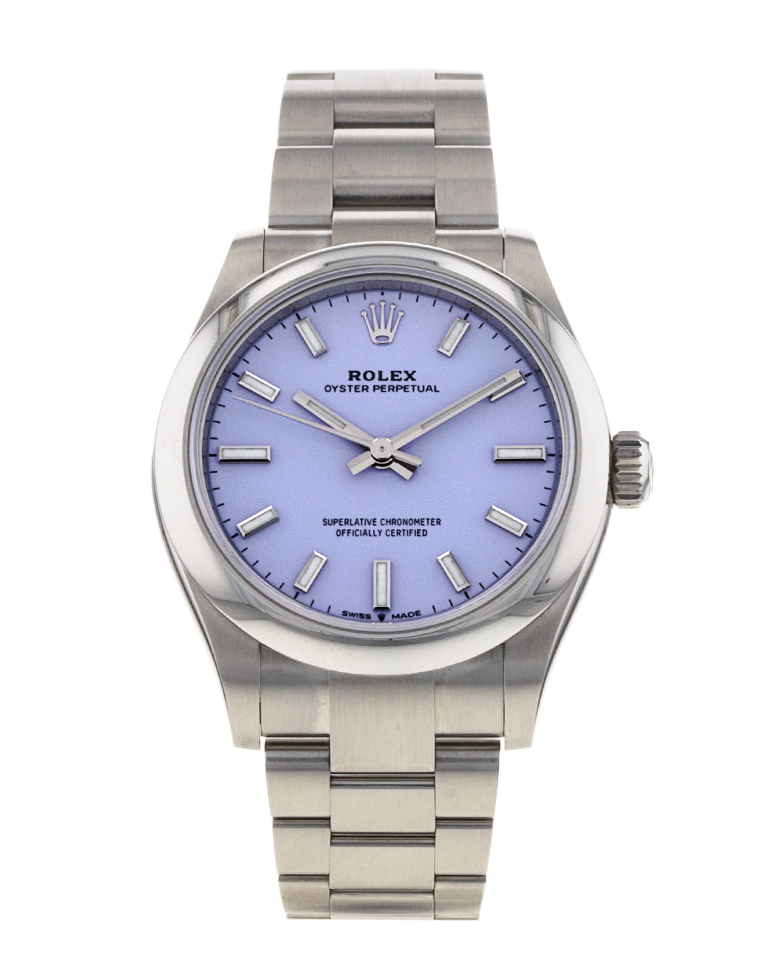 Questo Rolex Oyster Perpetual 277200 ha un quadrante lavender e un cinturino in bracciale. Questo Rolex è stato sottoposto a un'accurata ispezione di resistenza all'acqua, precisione, funzionalità e condizioni per determinare il livello di ricondizionamento richiesto per soddisfare i nostri rigorosi standard. È stato anche referenziato rispetto a documenti tecnici e registri del produttore, ove disponibili, per garantire l'autenticità e una cronologia pulita. I nostri orologi hanno una garanzia di 24 mesi per vostra maggior tranquillità contestualmente a eventuali garanzie residue del produttore derivate dal nuovo o dalla manutenzione. Per mantenere la garanzia del produttore su questo prodotto, l’orologio non è stato lucidato nel nostro centro di assistenza.