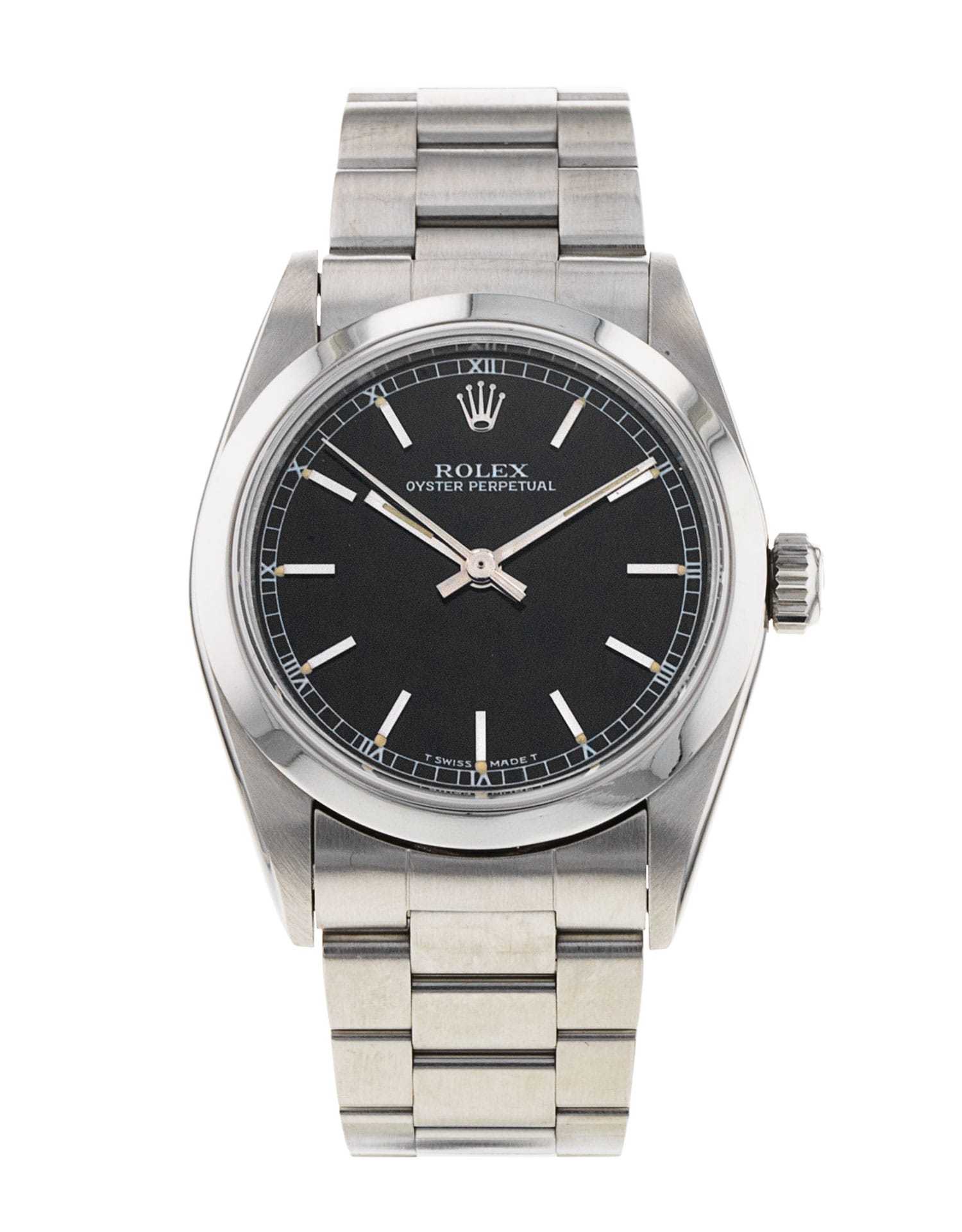 Questo Rolex Oyster Perpetual 67480 ha un quadrante black baton - roman numeral e un cinturino in bracciale. Questo Rolex è stato sottoposto a un'accurata ispezione di resistenza all'acqua, precisione, funzionalità e condizioni per determinare il livello di ricondizionamento richiesto per soddisfare i nostri rigorosi standard. È stato anche referenziato rispetto a documenti tecnici e registri del produttore, ove disponibili, per garantire l'autenticità e una cronologia pulita. Tutti i nostri orologi hanno una garanzia di 24 mesi per la tua tranquillità. Uno dei nostri tecnici specializzati nella lucidatura ha rimosso i segni sulla cassa e sul bracciale di questo orologio, causati dall’usura quotidiana, motivo per cui questo orologio non viene fornito con la garanzia residua del produttore.
