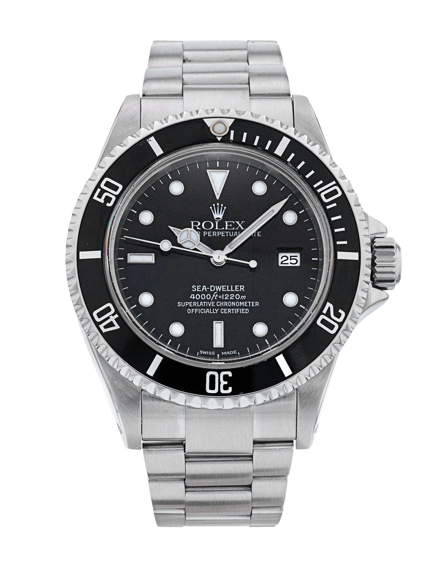 Questo Rolex Sea-Dweller 16600 ha un quadrante nero e un cinturino in bracciale. Questo Rolex è stato sottoposto a un'accurata ispezione di resistenza all'acqua, precisione, funzionalità e condizioni per determinare il livello di ricondizionamento richiesto per soddisfare i nostri rigorosi standard. È stato anche referenziato rispetto a documenti tecnici e registri del produttore, ove disponibili, per garantire l'autenticità e una cronologia pulita. Tutti i nostri orologi hanno una garanzia di 24 mesi per la tua tranquillità. Uno dei nostri tecnici specializzati nella lucidatura ha rimosso i segni sulla cassa e sul bracciale di questo orologio, causati dall’usura quotidiana, motivo per cui questo orologio non viene fornito con la garanzia residua del produttore.