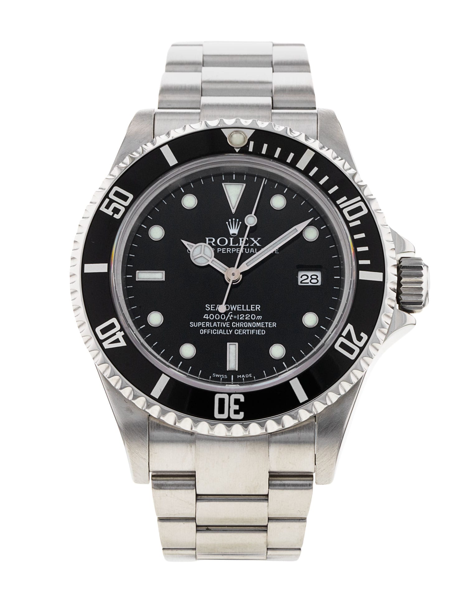 Questo Rolex Sea-Dweller 16600 ha un quadrante nero e un cinturino in bracciale. Questo Rolex è stato sottoposto a un'accurata ispezione di resistenza all'acqua, precisione, funzionalità e condizioni per determinare il livello di ricondizionamento richiesto per soddisfare i nostri rigorosi standard. È stato anche referenziato rispetto a documenti tecnici e registri del produttore, ove disponibili, per garantire l'autenticità e una cronologia pulita. Tutti i nostri orologi hanno una garanzia di 24 mesi per la tua tranquillità. Uno dei nostri tecnici specializzati nella lucidatura ha rimosso i segni sulla cassa e sul bracciale di questo orologio, causati dall’usura quotidiana, motivo per cui questo orologio non viene fornito con la garanzia residua del produttore.