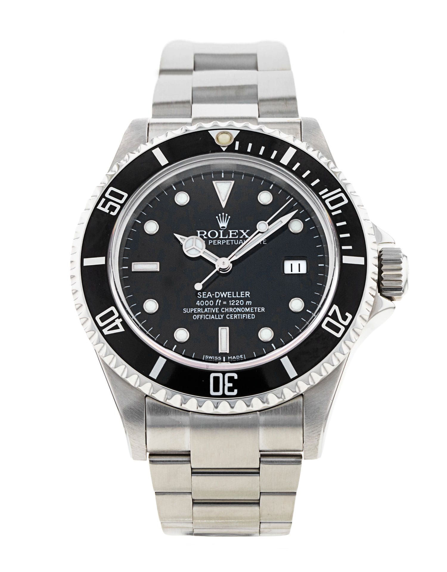 Questo Rolex Sea-Dweller 16600 ha un quadrante nero e un cinturino in bracciale. Questo Rolex è stato sottoposto a un'accurata ispezione di resistenza all'acqua, precisione, funzionalità e condizioni per determinare il livello di ricondizionamento richiesto per soddisfare i nostri rigorosi standard. È stato anche referenziato rispetto a documenti tecnici e registri del produttore, ove disponibili, per garantire l'autenticità e una cronologia pulita. Tutti i nostri orologi hanno una garanzia di 24 mesi per la tua tranquillità. Uno dei nostri tecnici specializzati nella lucidatura ha rimosso i segni sulla cassa e sul bracciale di questo orologio, causati dall’usura quotidiana, motivo per cui questo orologio non viene fornito con la garanzia residua del produttore.