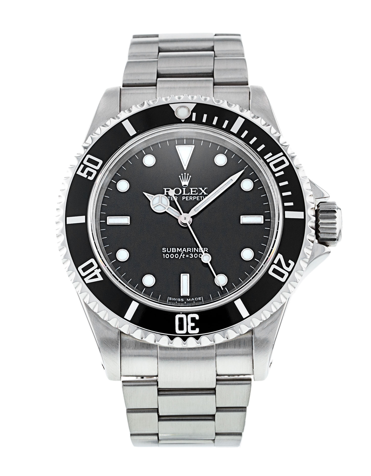 Questo Rolex Submariner 14060M ha un quadrante nero e un cinturino in tessuto. Questo Rolex è stato sottoposto a un'accurata ispezione di resistenza all'acqua, precisione, funzionalità e condizioni per determinare il livello di ricondizionamento richiesto per soddisfare i nostri rigorosi standard. È stato anche referenziato rispetto a documenti tecnici e registri del produttore, ove disponibili, per garantire l'autenticità e una cronologia pulita. Tutti i nostri orologi hanno una garanzia di 24 mesi per la tua tranquillità. Uno dei nostri tecnici specializzati nella lucidatura ha rimosso i segni sulla cassa e sul bracciale di questo orologio, causati dall’usura quotidiana, motivo per cui questo orologio non viene fornito con la garanzia residua del produttore.