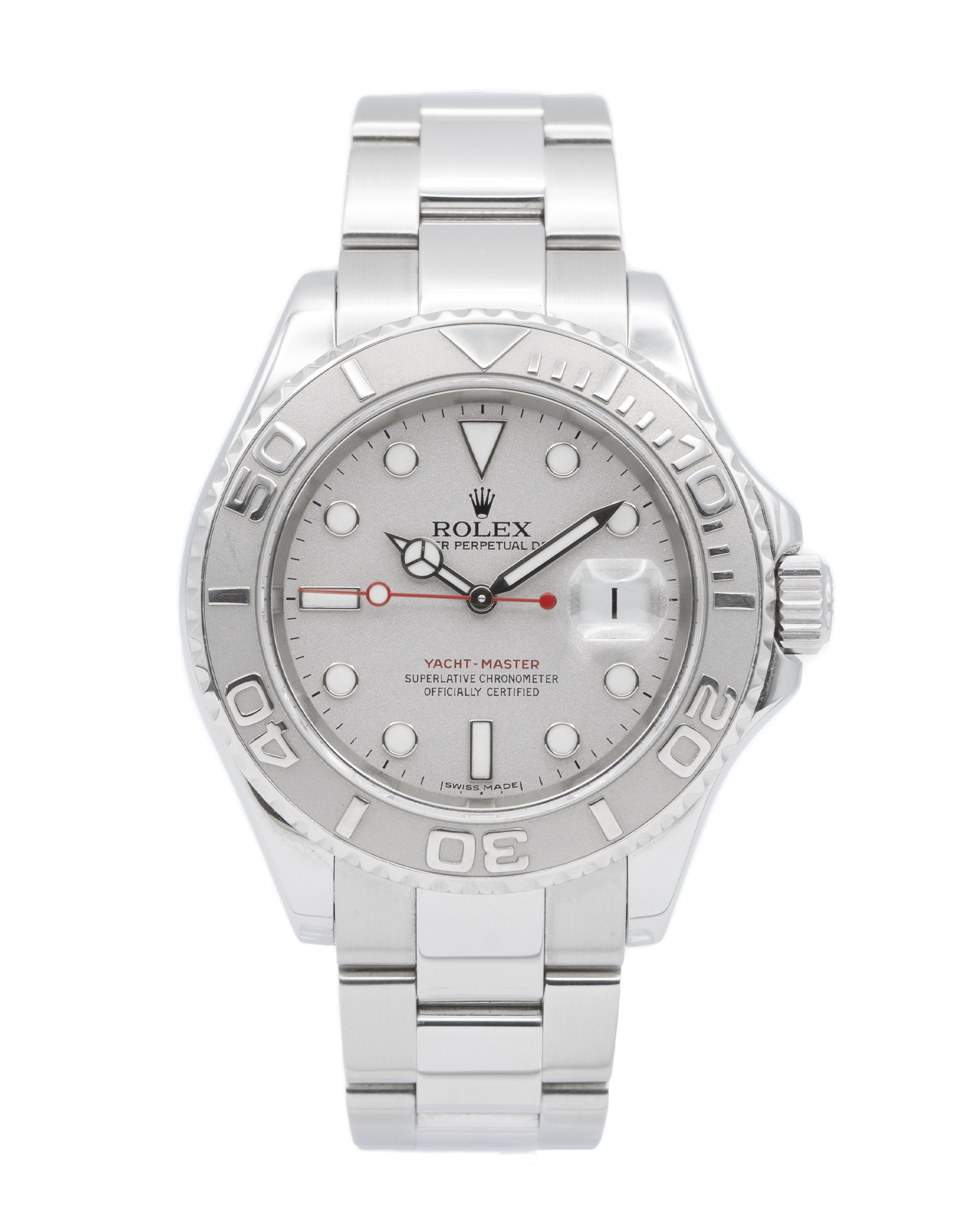 Questo Rolex Yacht-Master 16622 ha un quadrante platino e un cinturino in bracciale. Questo Rolex è stato sottoposto a un'accurata ispezione di resistenza all'acqua, precisione, funzionalità e condizioni per determinare il livello di ricondizionamento richiesto per soddisfare i nostri rigorosi standard. È stato anche referenziato rispetto a documenti tecnici e registri del produttore, ove disponibili, per garantire l'autenticità e una cronologia pulita. Tutti i nostri orologi hanno una garanzia di 24 mesi per la tua tranquillità. Uno dei nostri tecnici specializzati nella lucidatura ha rimosso i segni sulla cassa e sul bracciale di questo orologio, causati dall’usura quotidiana, motivo per cui questo orologio non viene fornito con la garanzia residua del produttore.