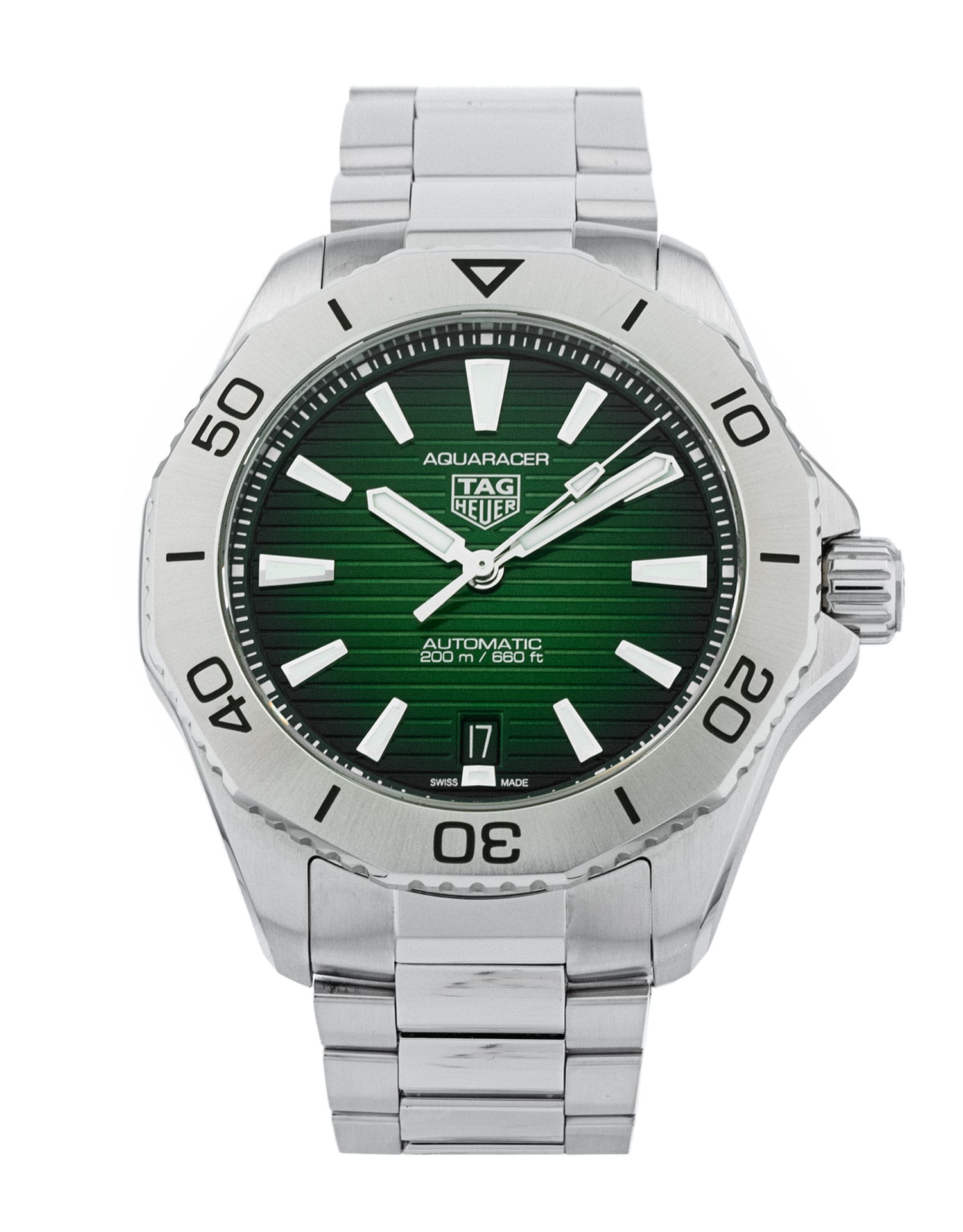 Questo Tag Heuer Aquaracer WBP2115.BA0627 ha un quadrante verde baton e un cinturino in bracciale. Questo Tag Heuer è stato sottoposto a un'accurata ispezione di accuratezza, funzionalità e condizioni presso il nostro centro di assistenza certificato Tag Heuer per determinare il livello di ricondizionamento richiesto per soddisfare i nostri rigorosi standard. È stato inoltre verificato nei nostri registri per garantirne l'autenticità. I nostri orologi hanno una garanzia di 24 mesi per vostra maggior tranquillità contestualmente a eventuali garanzie residue del produttore derivate dal nuovo o dalla manutenzione.