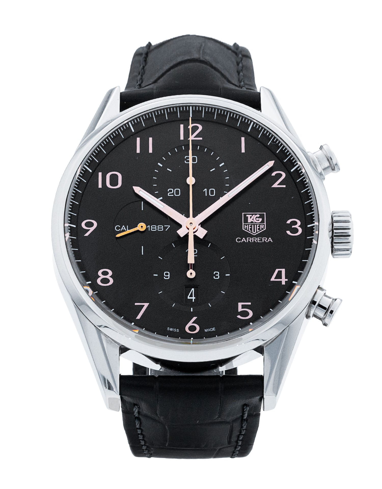 Questo Tag Heuer Carrera CAR2014.FC6235 ha un quadrante nero numeri arabi e un cinturino in pelle. Questo Tag Heuer è stato sottoposto a un'accurata ispezione di accuratezza, funzionalità e condizioni presso il nostro centro di assistenza certificato Tag Heuer per determinare il livello di ricondizionamento richiesto per soddisfare i nostri rigorosi standard. È stato inoltre verificato nei nostri registri per garantirne l'autenticità. Tutti i nostri orologi hanno una garanzia di 24 mesi per la tua tranquillità.