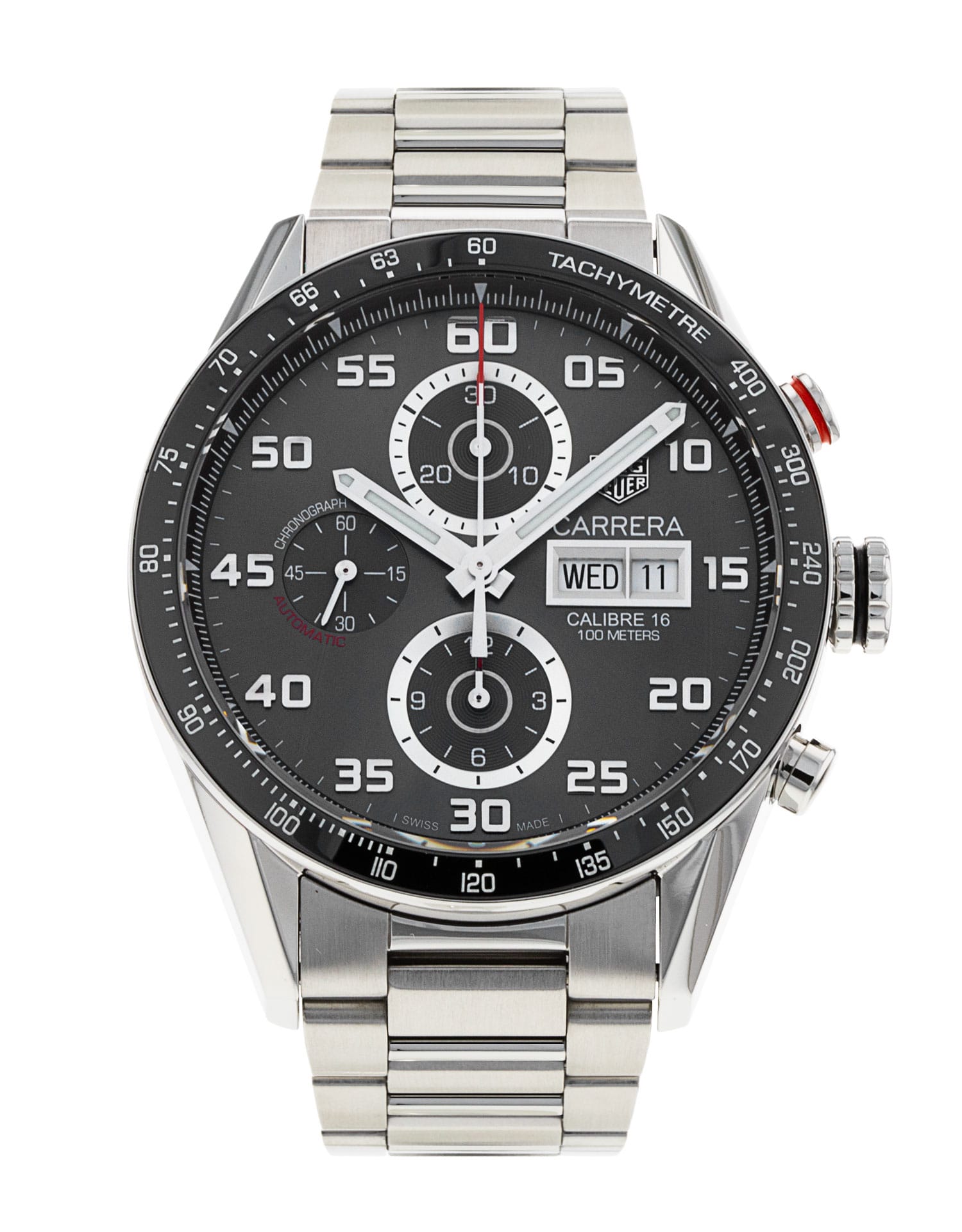 Questo Tag Heuer Carrera CV2A1U.BA0738 ha un quadrante grigio numeri arabi e un cinturino in bracciale. Questo Tag Heuer è stato sottoposto a un'accurata ispezione di accuratezza, funzionalità e condizioni presso il nostro centro di assistenza certificato Tag Heuer per determinare il livello di ricondizionamento richiesto per soddisfare i nostri rigorosi standard. È stato inoltre verificato nei nostri registri per garantirne l'autenticità. Tutti i nostri orologi hanno una garanzia di 24 mesi per la tua tranquillità.
