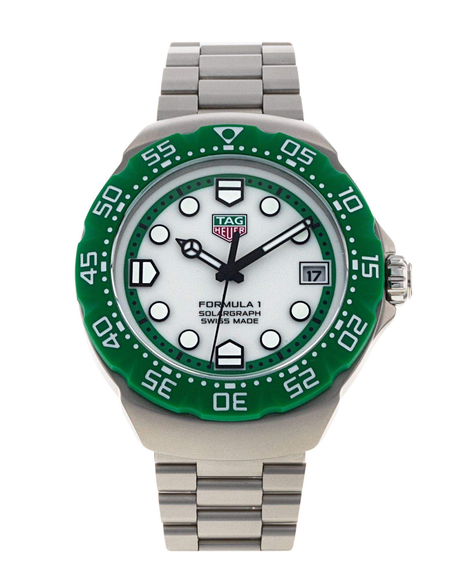 Questo Tag Heuer Formula 1 WBY1113.BA0042 ha un quadrante bianco e un cinturino in bracciale. Questo Tag Heuer è stato sottoposto a un'accurata ispezione di accuratezza, funzionalità e condizioni presso il nostro centro di assistenza certificato Tag Heuer per determinare il livello di ricondizionamento richiesto per soddisfare i nostri rigorosi standard. È stato inoltre verificato nei nostri registri per garantirne l'autenticità. I nostri orologi hanno una garanzia di 24 mesi per vostra maggior tranquillità contestualmente a eventuali garanzie residue del produttore derivate dal nuovo o dalla manutenzione.