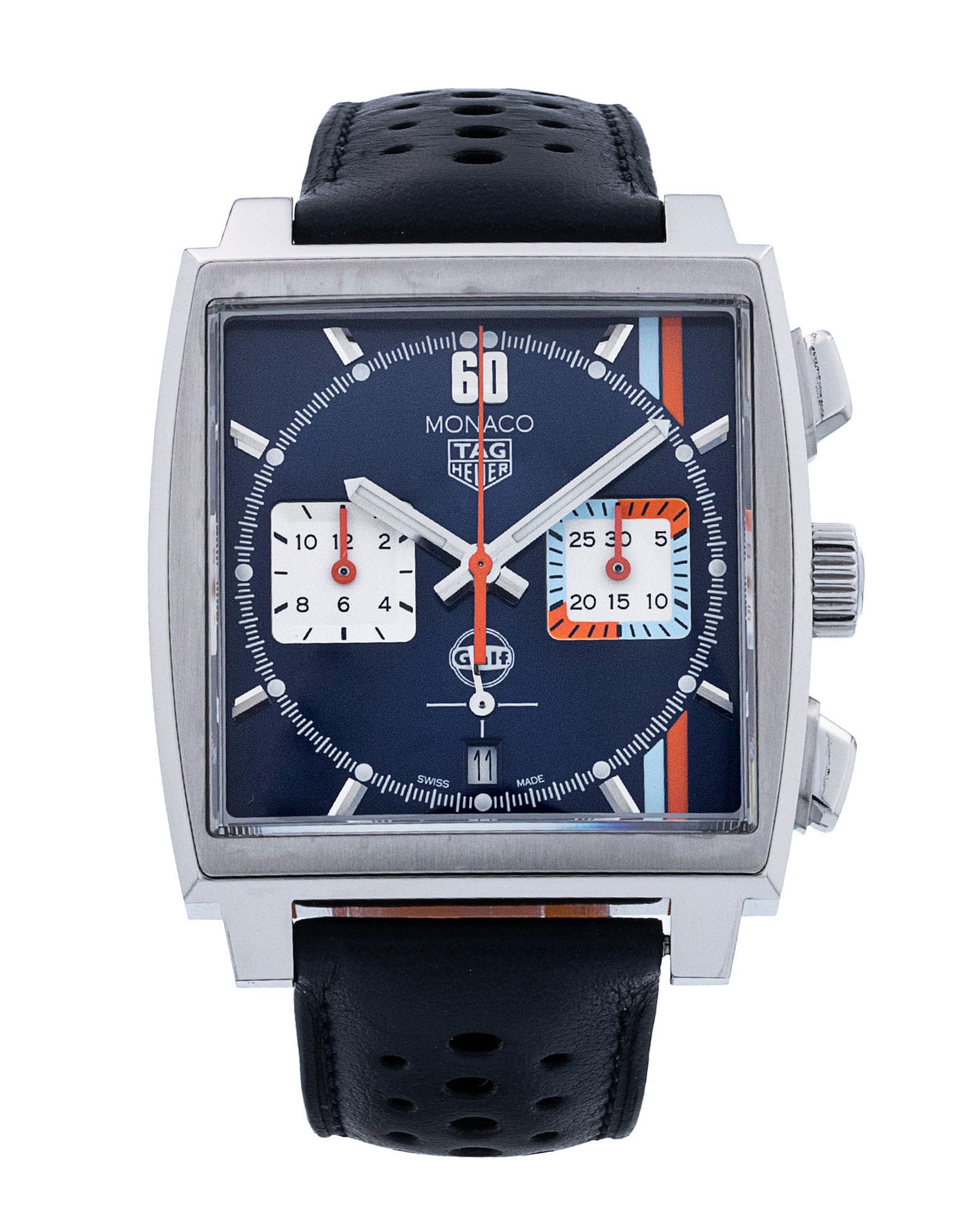 Questo Tag Heuer Monaco CBL2115.FC6494 ha un quadrante blu e un cinturino in pelle. Questo Tag Heuer è stato sottoposto a un'accurata ispezione di accuratezza, funzionalità e condizioni presso il nostro centro di assistenza certificato Tag Heuer per determinare il livello di ricondizionamento richiesto per soddisfare i nostri rigorosi standard. È stato inoltre verificato nei nostri registri per garantirne l'autenticità. Tutti i nostri orologi hanno una garanzia di 24 mesi per la tua tranquillità.