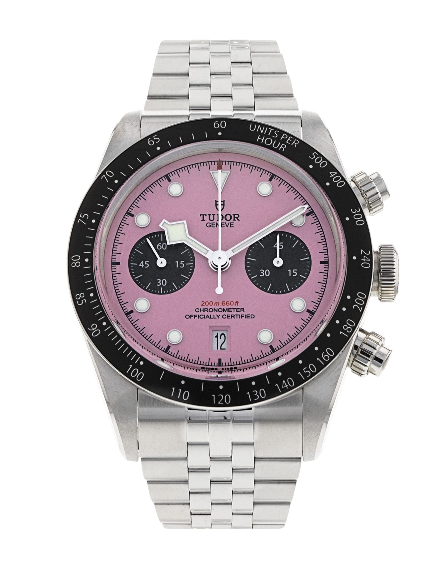 Questo Tudor Black Bay Chrono M79360N-0019 ha un quadrante rosa e un cinturino in bracciale. Questo Tudor è stato sottoposto a un'accurata ispezione di resistenza all'acqua, precisione, funzionalità e condizioni per determinare il livello di ricondizionamento richiesto per soddisfare i nostri rigorosi standard. È stato anche referenziato rispetto a documenti tecnici e registri del produttore, ove disponibili, per garantire l'autenticità e una cronologia pulita. I nostri orologi hanno una garanzia di 24 mesi per vostra maggior tranquillità contestualmente a eventuali garanzie residue del produttore derivate dal nuovo o dalla manutenzione. Per mantenere la garanzia del produttore su questo prodotto, l’orologio non è stato lucidato nel nostro centro di assistenza.
