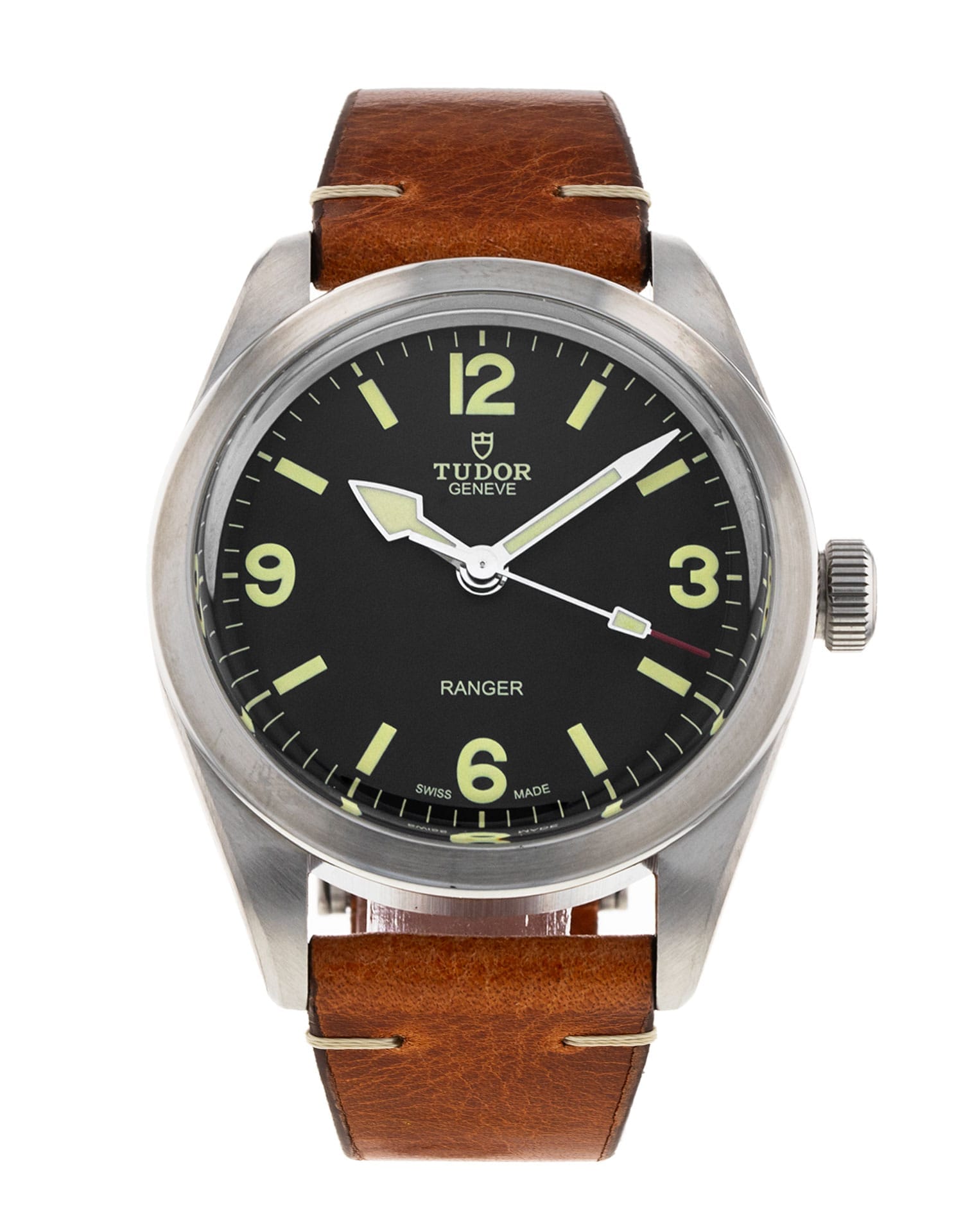 Questo Tudor Ranger M79950-0002 ha un quadrante nero quadrante numeri arabi e un cinturino in pelle. Questo Tudor è stato sottoposto a un'accurata ispezione di resistenza all'acqua, precisione, funzionalità e condizioni per determinare il livello di ricondizionamento richiesto per soddisfare i nostri rigorosi standard. È stato anche referenziato rispetto a documenti tecnici e registri del produttore, ove disponibili, per garantire l'autenticità e una cronologia pulita. Tutti i nostri orologi hanno una garanzia di 24 mesi per la tua tranquillità. Uno dei nostri tecnici specializzati nella lucidatura ha rimosso i segni sulla cassa e sul bracciale di questo orologio, causati dall’usura quotidiana, motivo per cui questo orologio non viene fornito con la garanzia residua del produttore.