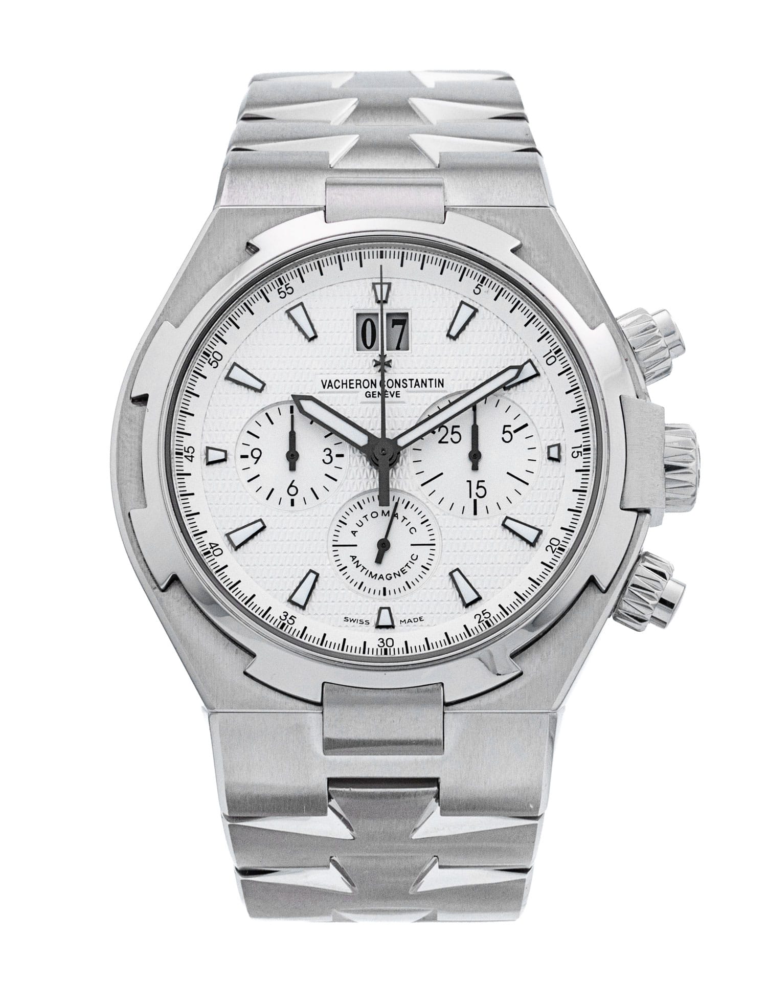 Questo Vacheron Constantin Overseas 49150/B01A-9095 ha un quadrante bianco titanio e un cinturino in bracciale. Questo Vacheron Constantin è stato sottoposto a un'accurata ispezione di accuratezza, funzionalità e condizioni presso il nostro centro di assistenza certificato Vacheron Constantin per determinare il livello di ricondizionamento richiesto per soddisfare i nostri rigorosi standard. È stato inoltre verificato nei nostri registri per garantirne l'autenticità. Tutti i nostri orologi hanno una garanzia di 24 mesi per la tua tranquillità.
