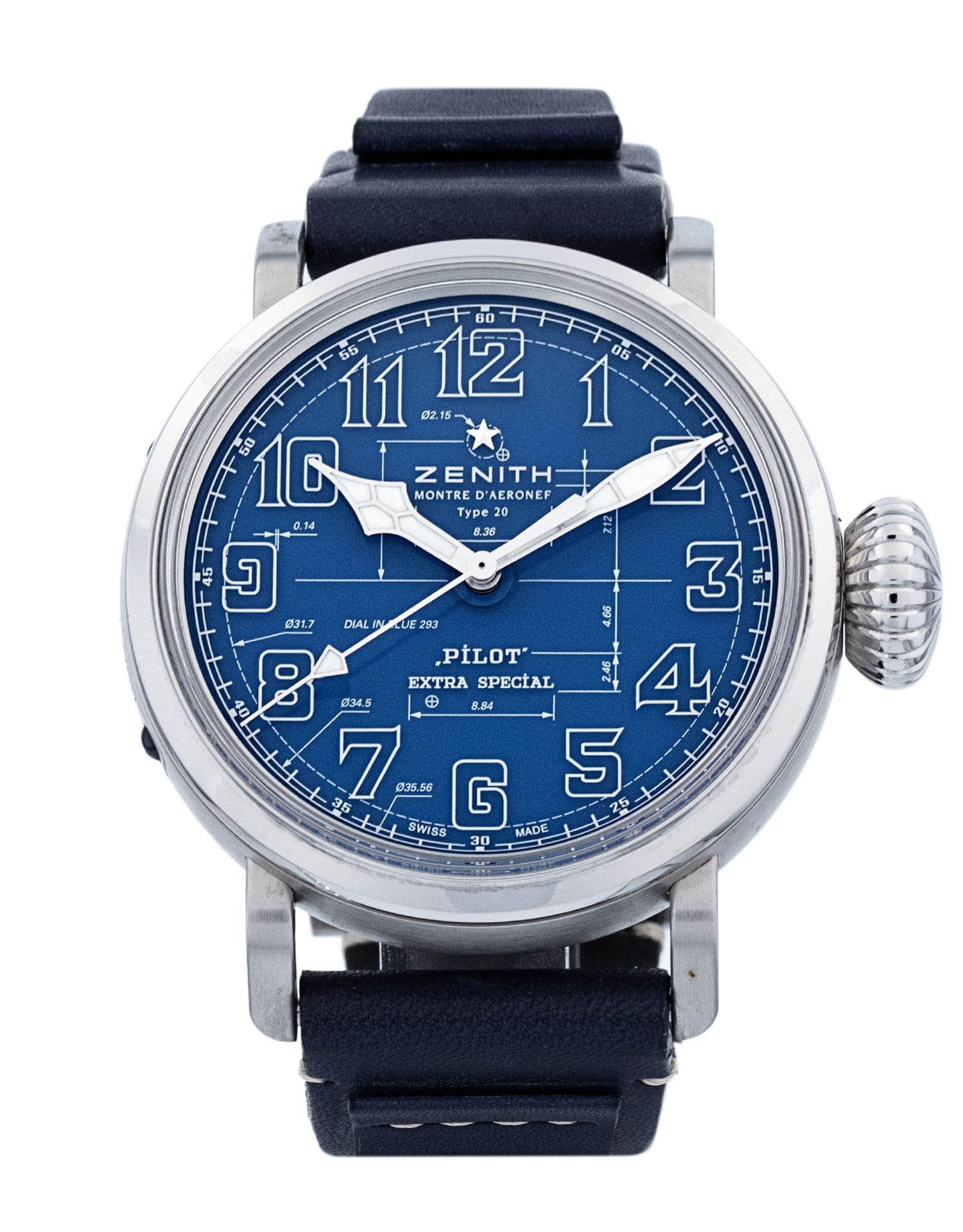 Questo Zenith Pilot 03.2435.679/51.I012 ha un quadrante blu numeri arabi e un cinturino in pelle. Questo Zenith è stato sottoposto a un'accurata ispezione di resistenza all'acqua, precisione, funzionalità e condizioni per determinare il livello di ricondizionamento richiesto per soddisfare i nostri rigorosi standard. È stato anche referenziato rispetto a documenti tecnici e registri del produttore, ove disponibili, per garantire l'autenticità e una cronologia pulita. Tutti i nostri orologi hanno una garanzia di 24 mesi per la tua tranquillità.
